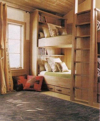 Here are some additional kids rooms that inspire me... I particularly love the storage solutions in these rooms! And, what kid wouldn't love a bunk room?