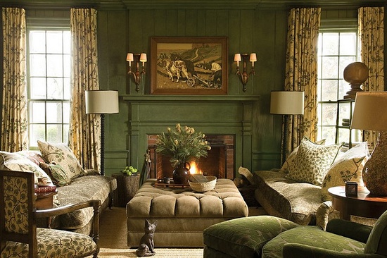 F&B "Calke Green" a fabulous color that doesn't feel forced or obnoxiously bright. It has a preppy, old world feel, and I really like that. I look forward to seeing it in the space. But until then, here are some other "green rooms" that are floating around my desk for inspiration!