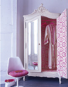I also love the idea of wallpapering the interior of an armoire... It sort of feels like you're opening a jewelry box.